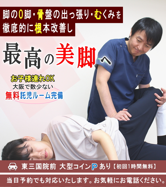 関節を矯正して正しい位置に戻すことにより、関節周囲の筋肉の緊張がとれ、血液とリンパの流れがよくなり脚のむくみが取れてきて脚が細くなります。